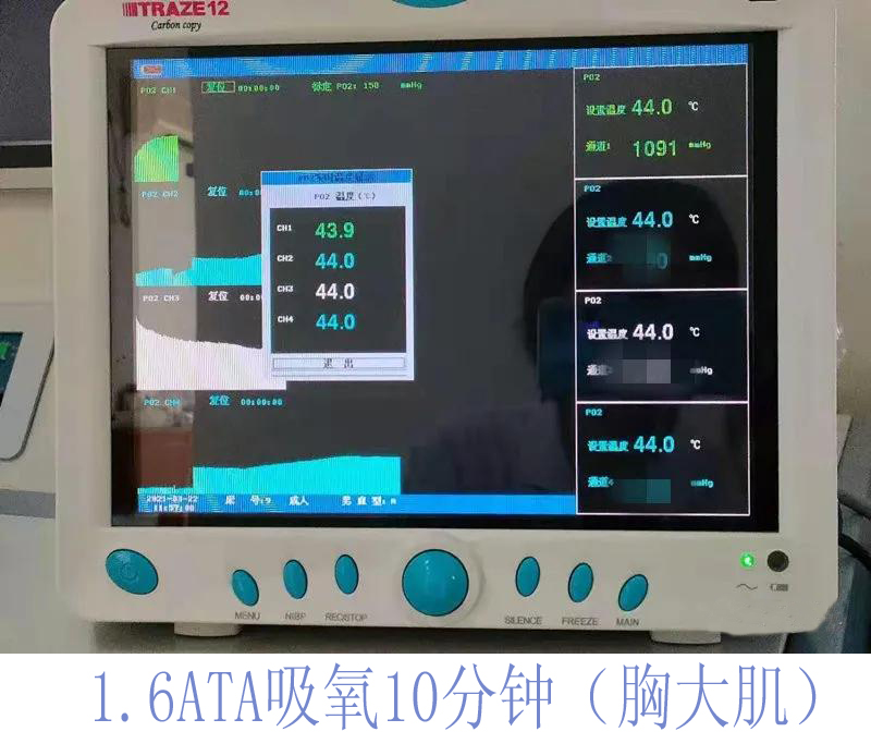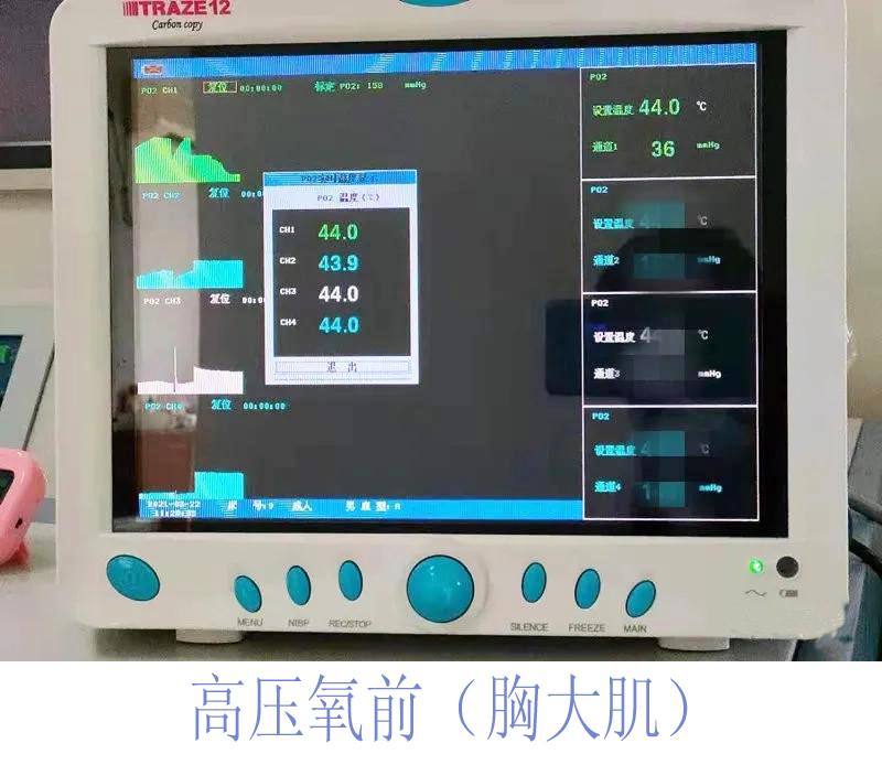 5.1 高壓氧治療的核心是能夠增加組織的氧分壓及氧含量,傳統(tǒng)的血氧飽和度監(jiān)測在高壓氧狀態(tài)下沒有實際價值,瞬間就可以達到100%飽和,隨著高壓氧治療的深入,無法體現(xiàn)出高壓氧狀態(tài)下組織氧分壓的提高。經(jīng)皮氧分壓測定則不同,可以實時監(jiān)測到高壓氧治療過程中,任何時間節(jié)點組織氧分壓的準確數(shù)值,可以間接反映出“吸氧通路”是否通順?面罩佩戴是否嚴密?如果吸氧過程中組織氧分壓不能達到預(yù)期值,可能會影響到療效。